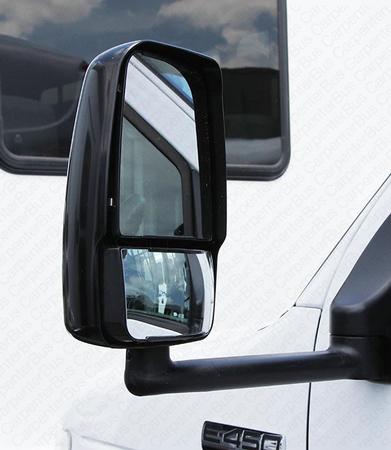 728519 driver side heated remote mirror assembly. 2020 deluxe head both the upper and lower glass are heated and power adjust. Black.